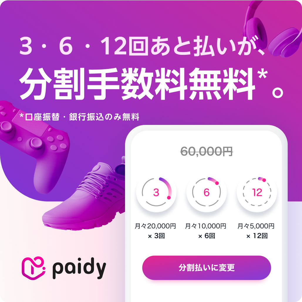 - 株式会社Paidyは本キャンペーンを、キャンペーン期間であっても予告なく変更または終了する場合がございます。